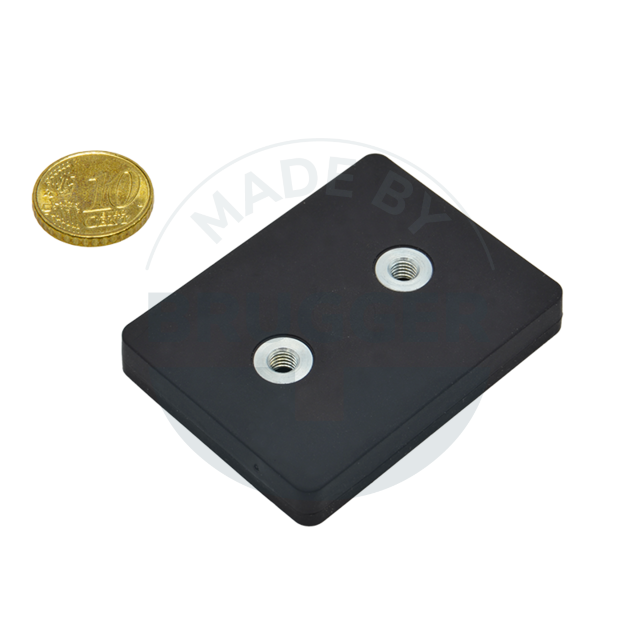 Magnetsystem aus NdFeB, Gummimantel schwarz, mit 2 x Innengewinde M6, rechteckig 74x45 mm