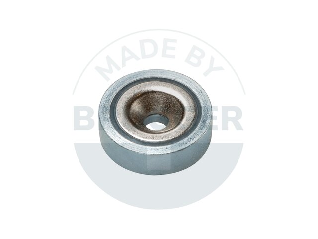 Topfmagnet aus NdFeB Stahlgehäuse mit Bohrung und Senkung verzinkt 32mm | © Brugger GmbH
