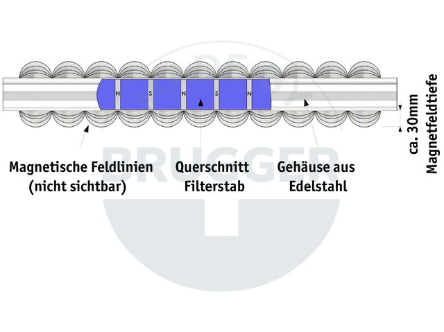 Magnetic filter rods ø25mm made of NdFeB, internal thread on both sides, stainless steel housing made of 1.4301